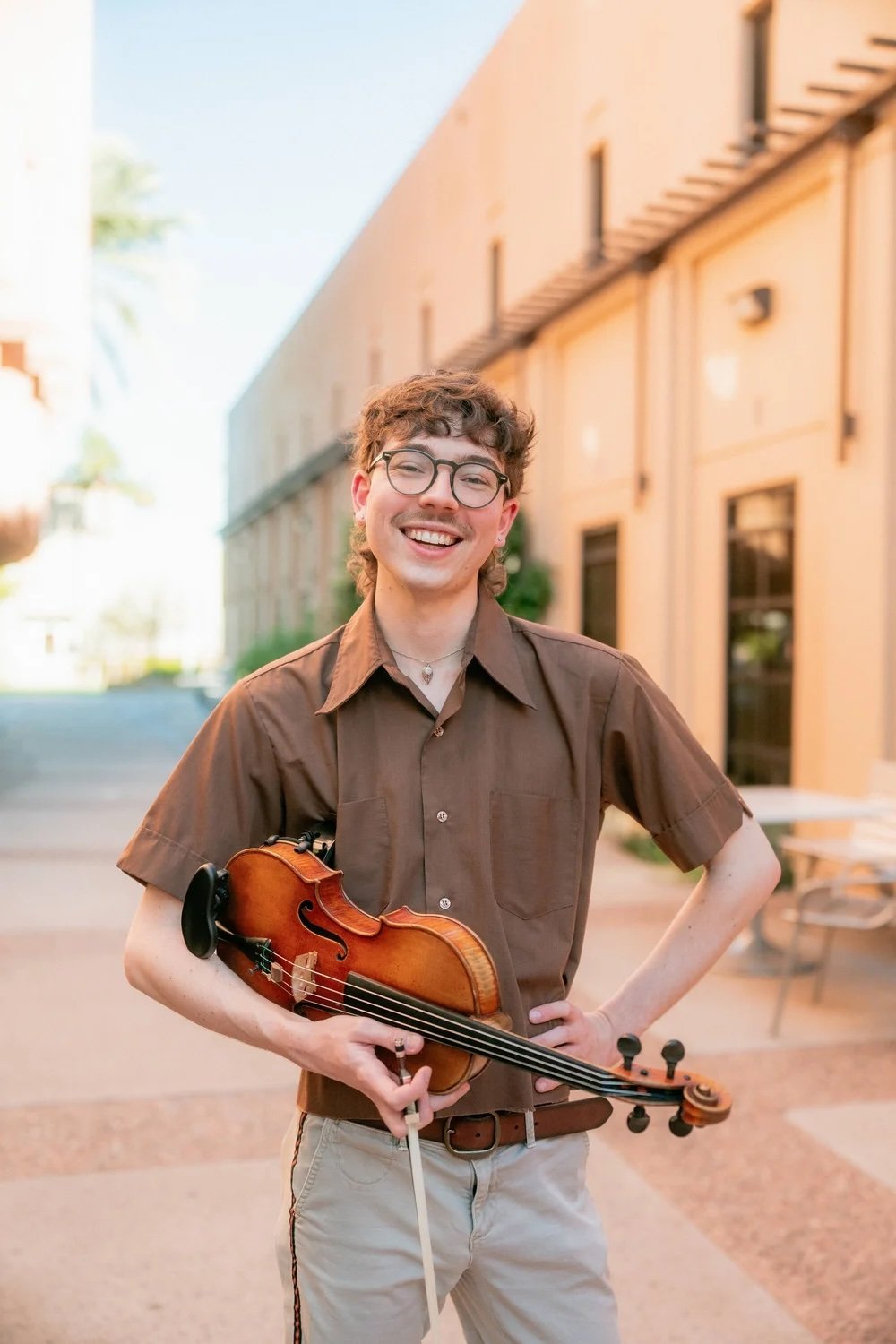 Luke Stikeleather, violinist, is pursuing a Master of Music in Violin Performance at Arizona State University under Dr. Katherine McLin. Originally from North Carolina, Luke obtained both a Bachelor of Music in Violin Performance, and a Bachelor of Arts in Arts Administration from the University of North Carolina at Greensboro in 2022, and stayed in the area as a freelance musician and administrator for one year after graduation. During his year off from school, Luke cultivated a dynamic career consisting of performing, teaching, and working in administration at his own alma mater.